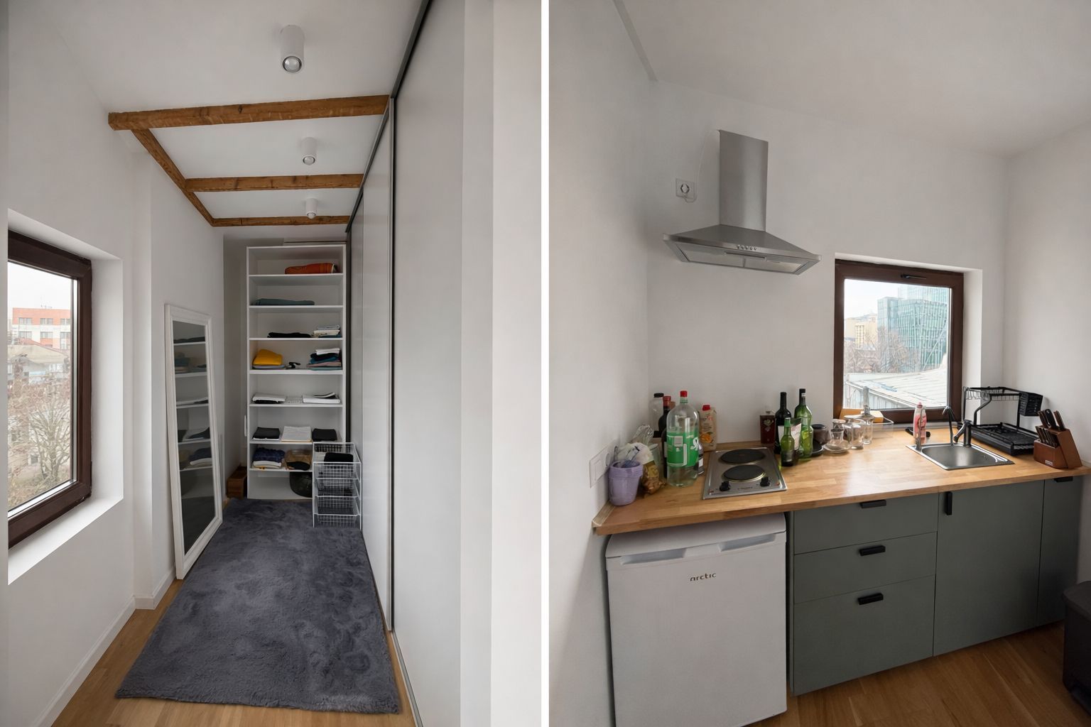 *Attic* is an individual apartment, arranged in a modern style, hotel studio type: an elegant open-space that integrates the living area and the sleeping area, separate dressing room, fully equipped kitchen, bathroom and its own balcony.