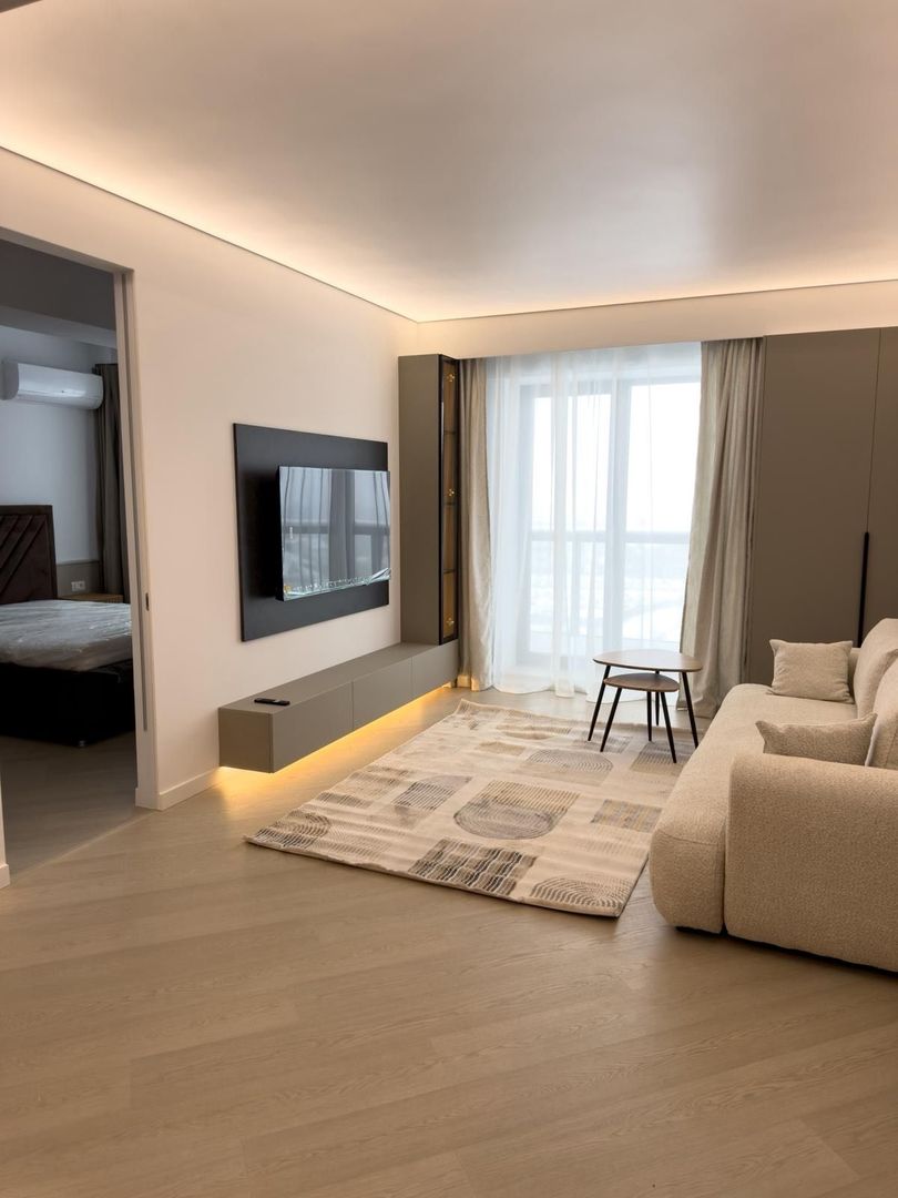We offer a modern 2-room apartment, located in the Cortina North residential complex, in a very good area of Bucharest, with quick access to the office buildings and business areas in the north of the city.