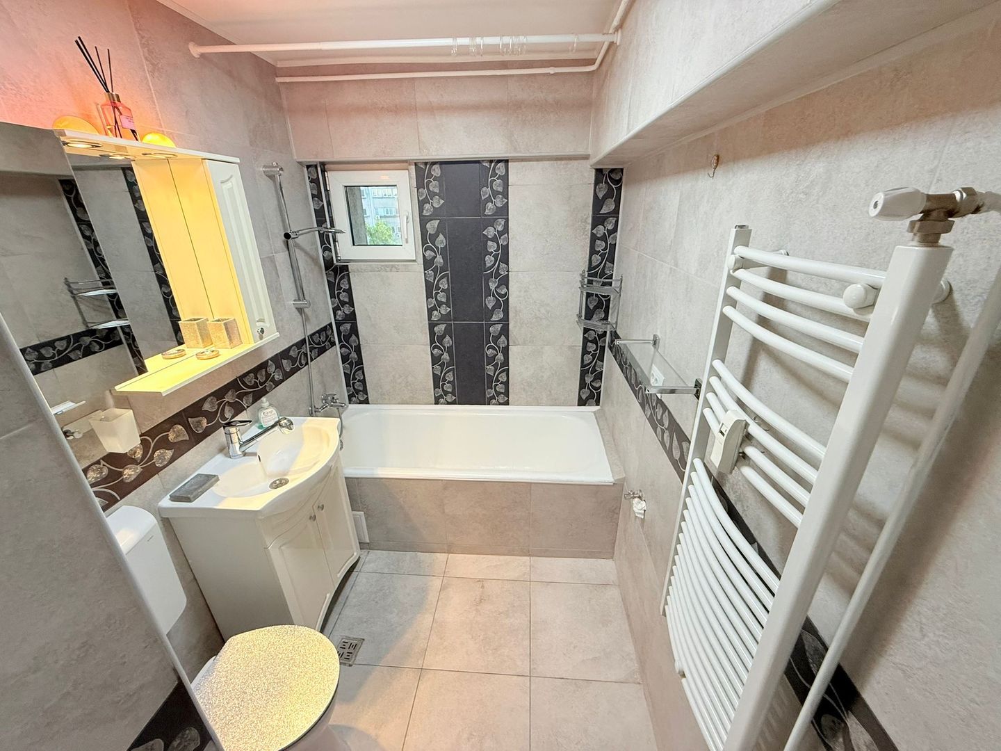 The apartment benefits from a mixed view, offers privacy, comfort and proximity to the central points of the city, being at a distance of only 5 minutes from the Romana Square metro.