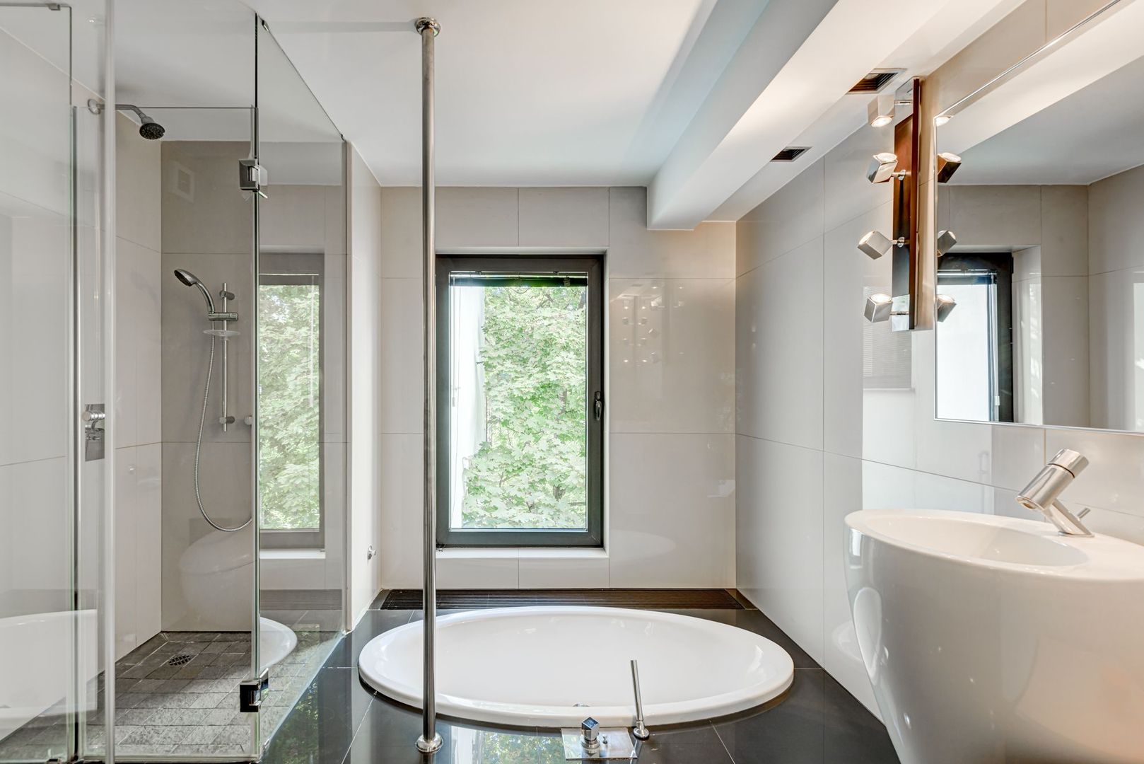 The roof terrace, arranged for a jacuzzi and outdoor shower, offers a spectacular view of Lake Floreasca and the surrounding green area – a rare and privileged space in the urban landscape of the capital.