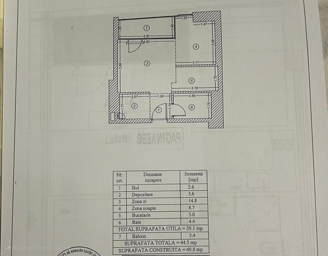 The studio has a usable area of 39 sqm and a balcony of 5 sqm, being efficiently and brightly compartmentalized. The modern interior benefits from the spacious living area, kitchen, bathroom and storage space.