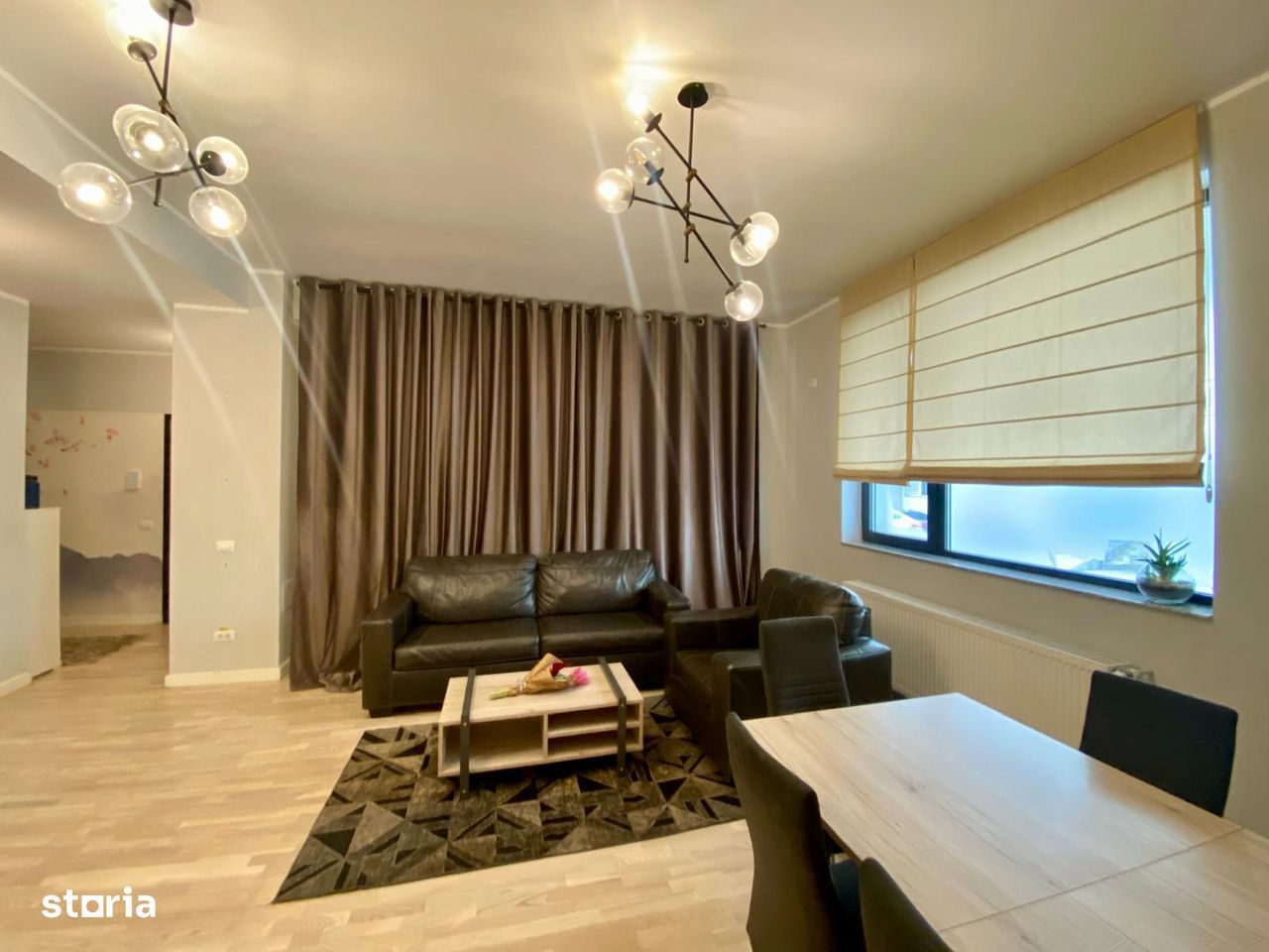 Locuința se predă complet utilată și parțial mobilată, cu finisaje premium precum canapele din piele, mobilier modern și electrocasnice de ultimă generație, inclusiv mașină de spălat vase și uscător de rufe. Confortul este completat de climatizarea eficientă, lift și un loc de parcare subteran inclus, totul într-un cadru extrem de liniștit, ferit de zgomotul stradal.