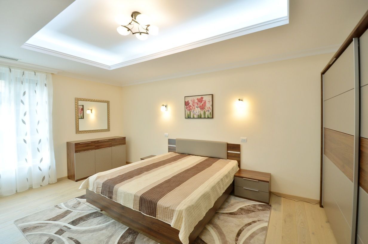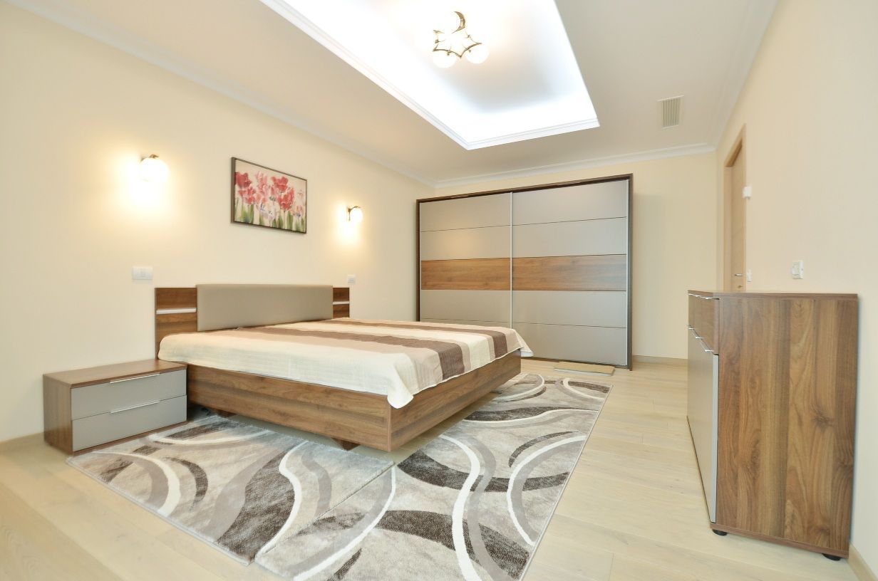 Apartamentul dispune de finisaje deosebite, de lux, scafe cu banda LED, incalzire in pardoseala cu termostat in fiecare camera, climatizare Daikin, centrala termica Saunier Duval, tamplarie PVC Salamander cu geamuri tripan si jaluzele, bai complet mobilate, baterii Grohe, bucatarie mare dotata cu electrocasnice moderne.