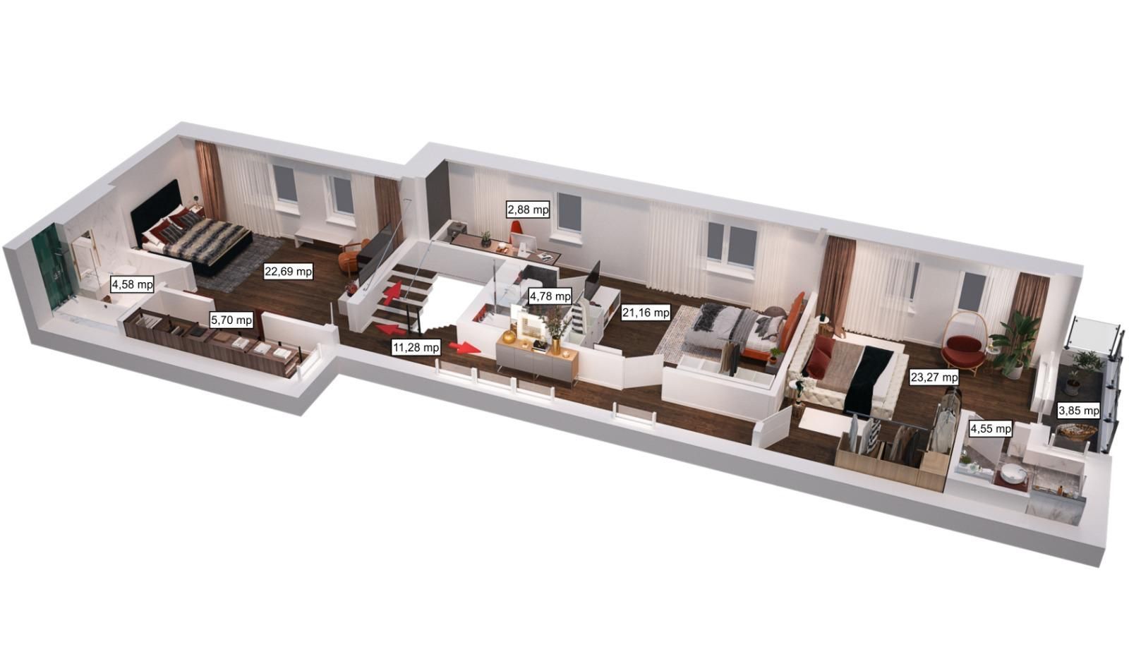 Proiectul se remarcă prin designul contemporan, compartimentarea eficientă și calitatea excepțională a finisajelor, fiind conceput pentru a oferi confort, intimitate și un stil de viață premium.