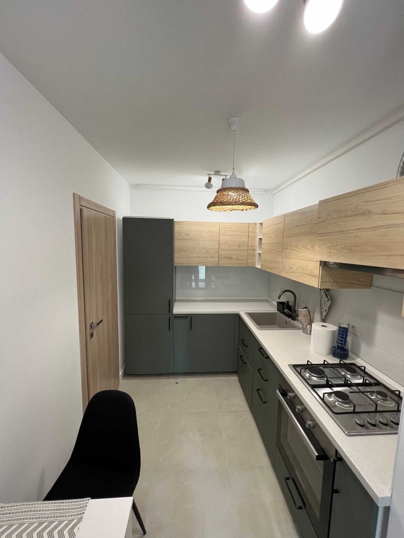 Apartamentul se vinde complet mobilat și echipat, incluzând frigider încorporat, cuptor, plită, hotă, mașină de spălat vase, mașină de spălat rufe, televizor Samsung (140 cm) și două aparate de aer condiționat Hyundai. Dormitorul matrimonial are dressing și baie proprie, iar livingul este spațios și luminos.