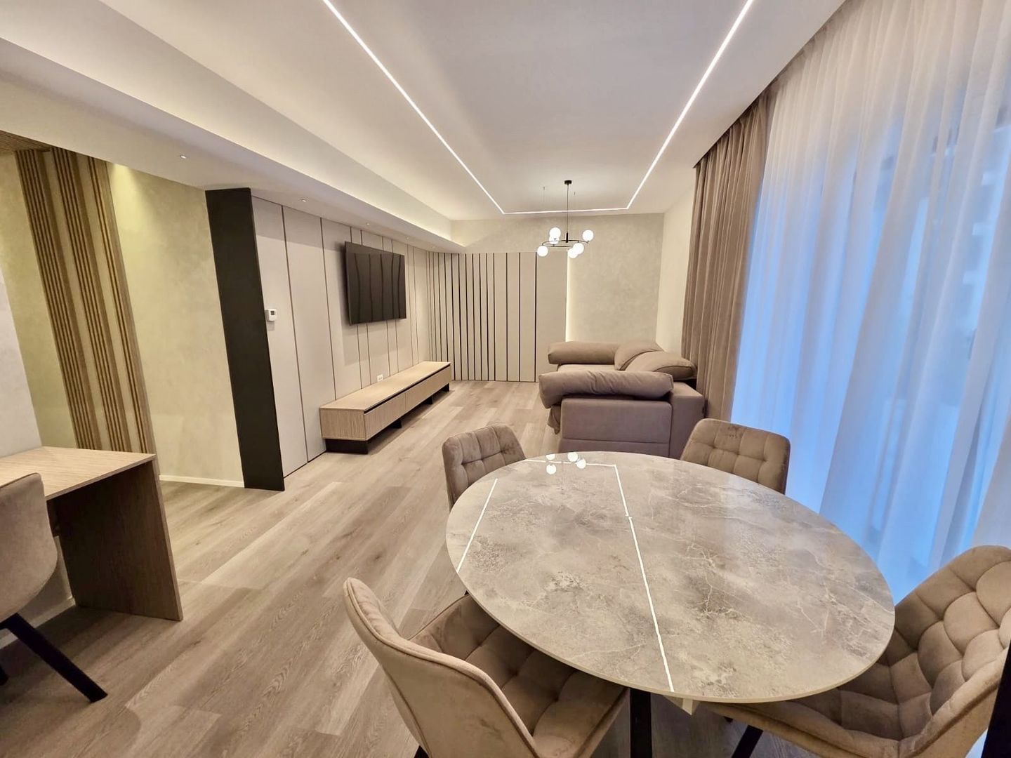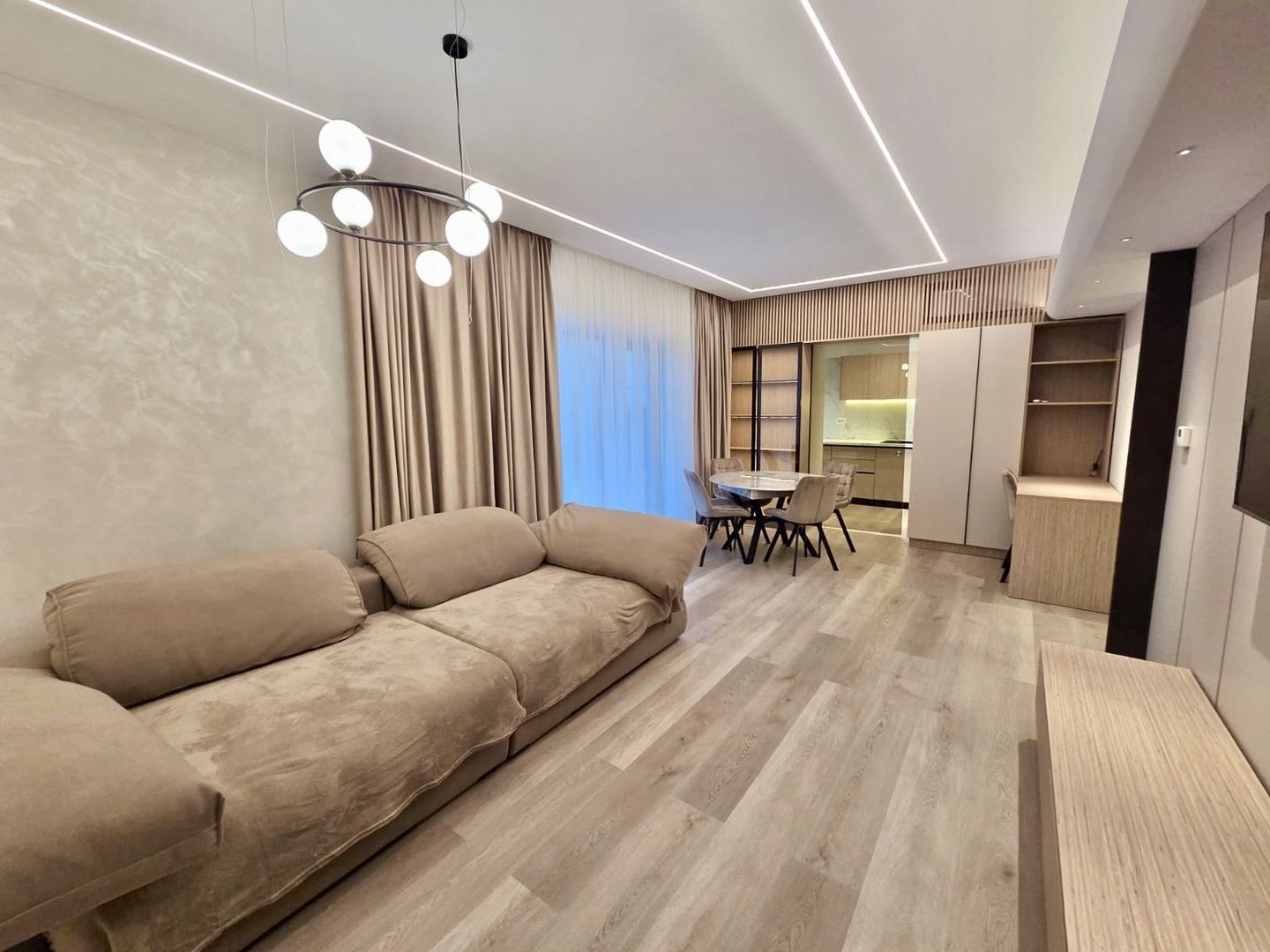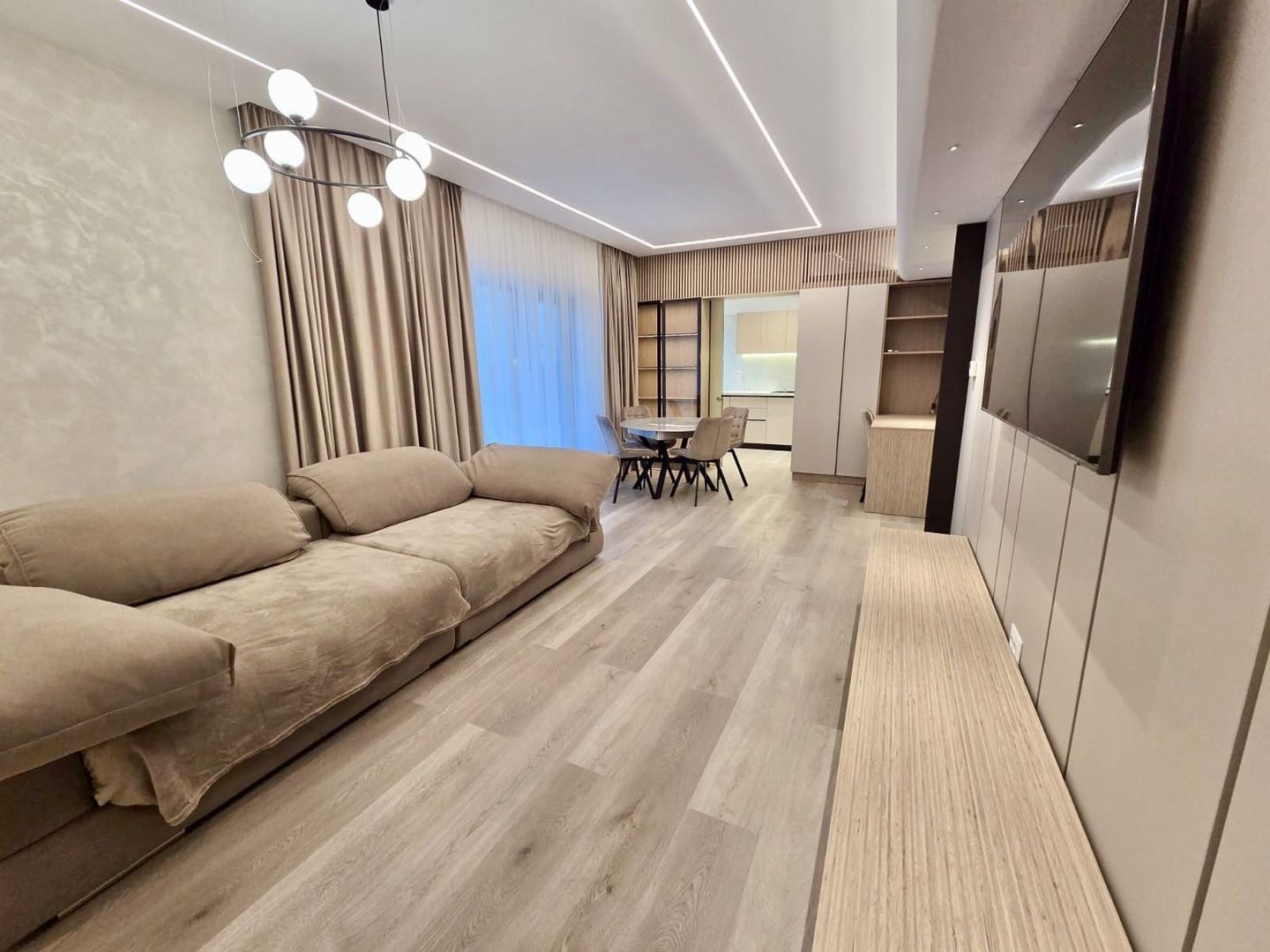 Apartamentul este luminos, bine compartimentat și finisat cu materiale de calitate superioară, oferind un living generos cu deschidere către terasa verde, trei dormitoare confortabile, băi elegante și o bucătărie modernă, complet utilată, dressinguri, dar și două locuri de parcare.