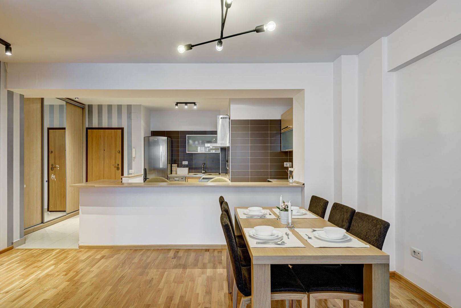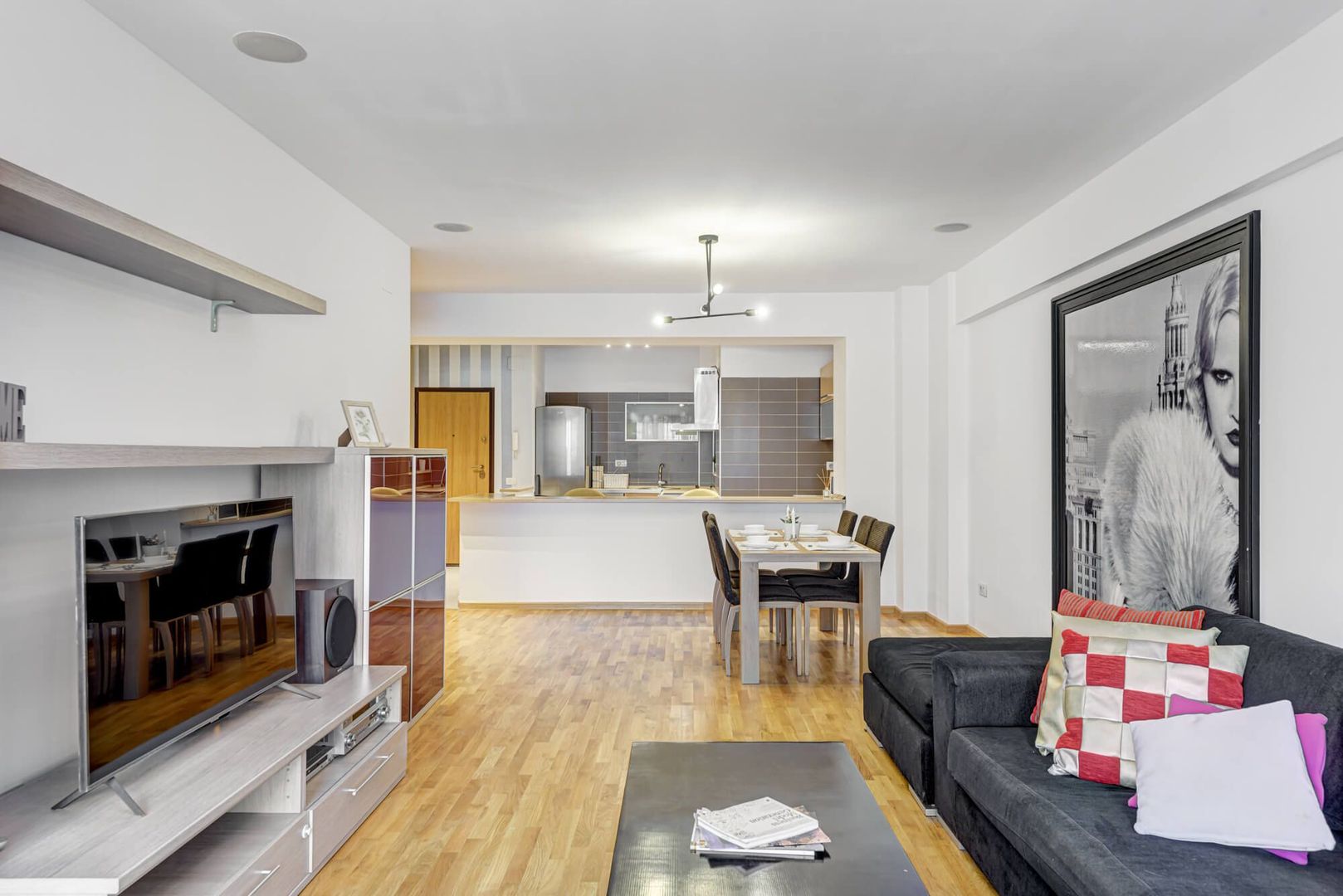 Apartamentul are o suprafata utila de 84 mp si este compartimentat eficient, cu living spatios si bucatarie deschisa, dormitor confortabil si o terasa generoasa de 17 mp, cu acces atat din living, cat si din dormitor.
