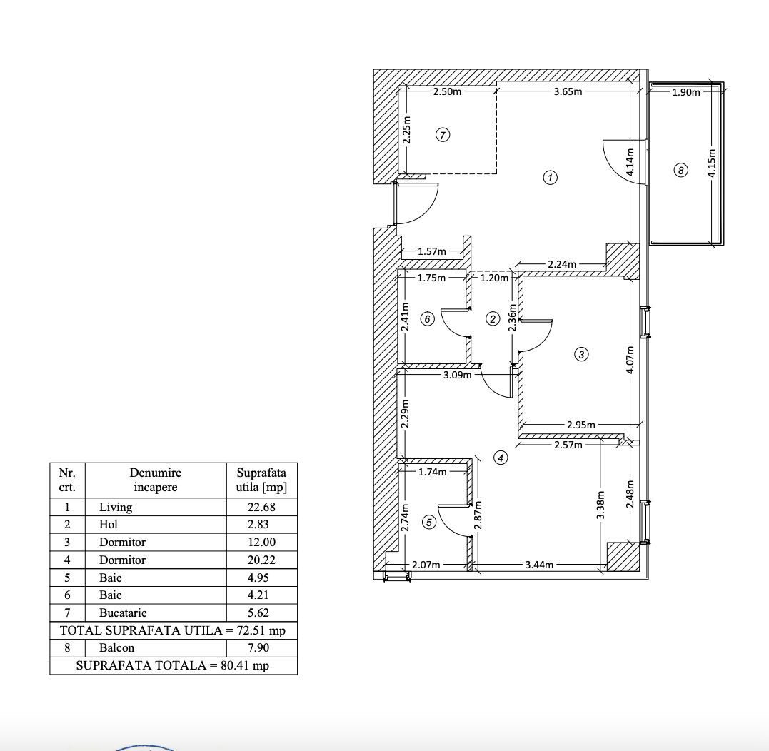 • Compartimentare: 2 dormitoare, living spațios, bucătărie open-space, 2 băi, dressing, balcon generos
