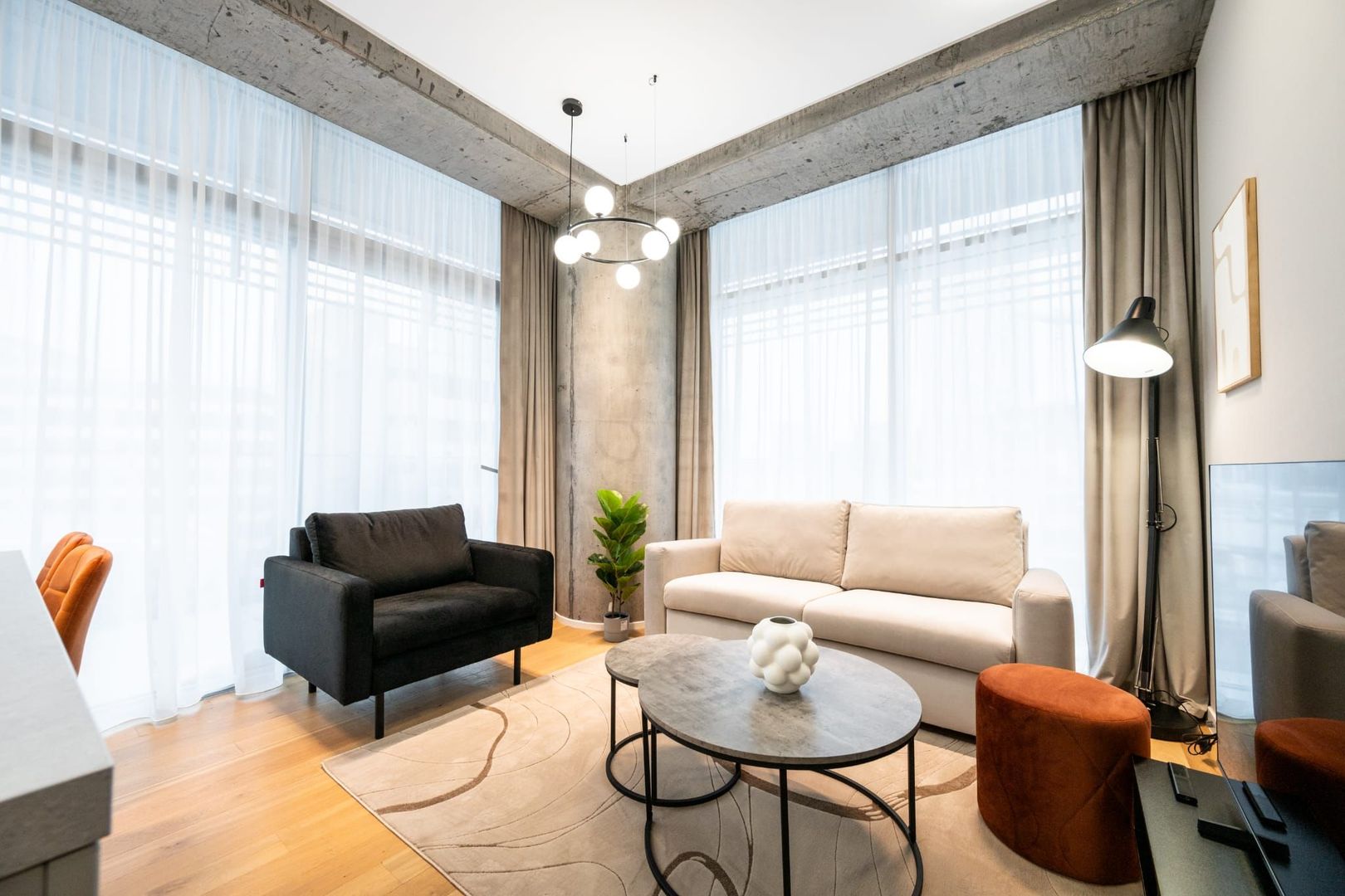 Apartamentul este complet mobilat și utilat, cu finisaje de calitate superioară și design contemporan.