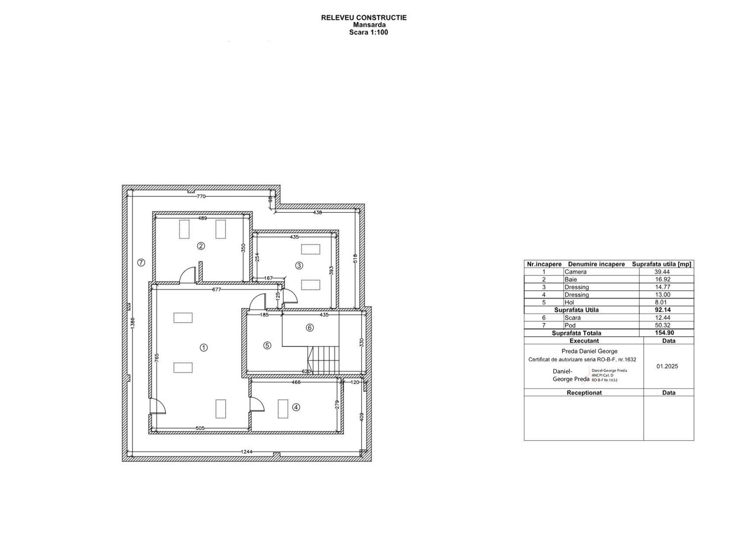 Mansardă: un dormitor matrimonial impresionant, cu baie proprie și dressing separat pentru el și ea.
